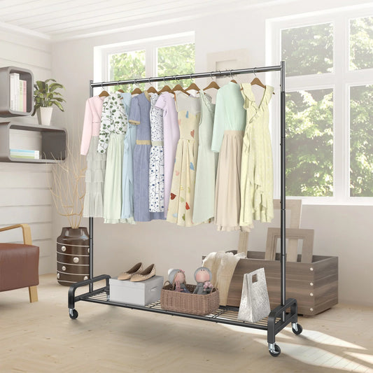 Bamboo Clothing Rack with Storage Shelves